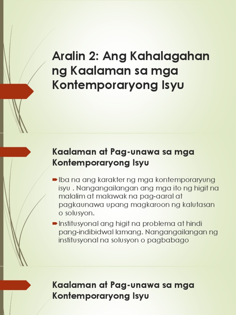 Aralin 2 Ang Kahalagahan Ng Kaalaman Sa Mga Kontemporaryong Isyu Pdf Pdf