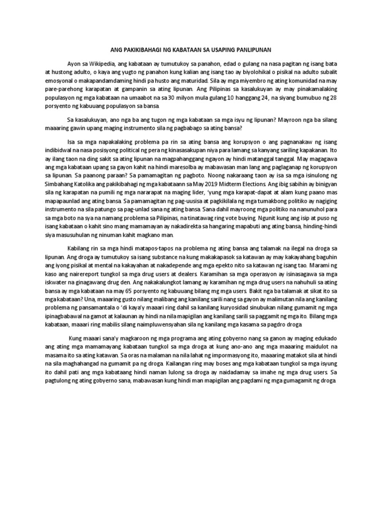 Ang Pakikibahagi Ng Kabataan Sa Usaping Panlipunan Pdf