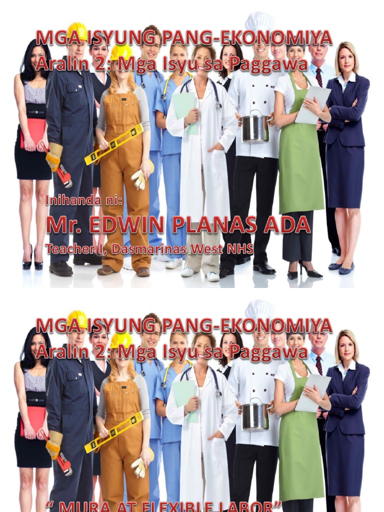 Mga Isyu sa Paggawa Inihanda ni. Contextual translation of mga isyu sa into English. EDWIN PLANAS ADA Teacher I Dasmarias West NHS.