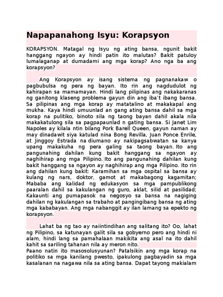 Napapanahong isyu ngayon sa pilipinas 2019. Isa itong napapanahong isyu pagkat halos lahat ng tao ay umaasa sa internet lalo na sa trabaho at pag-aaral ngayong may pandemya at lahat sila ay namomroblema sa mabagal na pag-usad ng internet dito sa bansa. Mga napapanahong isyu ngayong 2021. Sapagkat tayo rin ang pumipili ng taong magnanakaw sa atin.