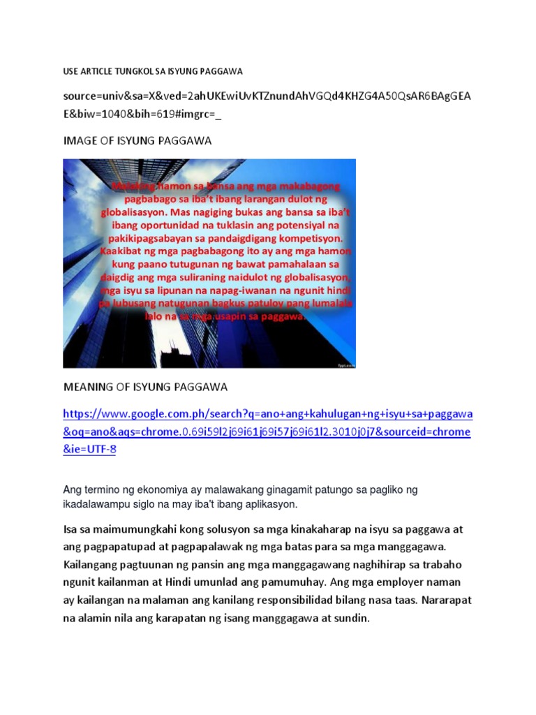 10 ap mga isyu sa paggawa 1. Narito ang ilang ilang mungkahi at rekomendasyon bilang tugon o solusyon sa ibat-ibang suliranin sa paggawa sa Pilipinas Eugenio De Guzman 2021. May mga isyu at suliranin na kinakaharap ito na minsan ay nakakasagabal sa pagkakaroon ng maayos na produkto at serbisyo.