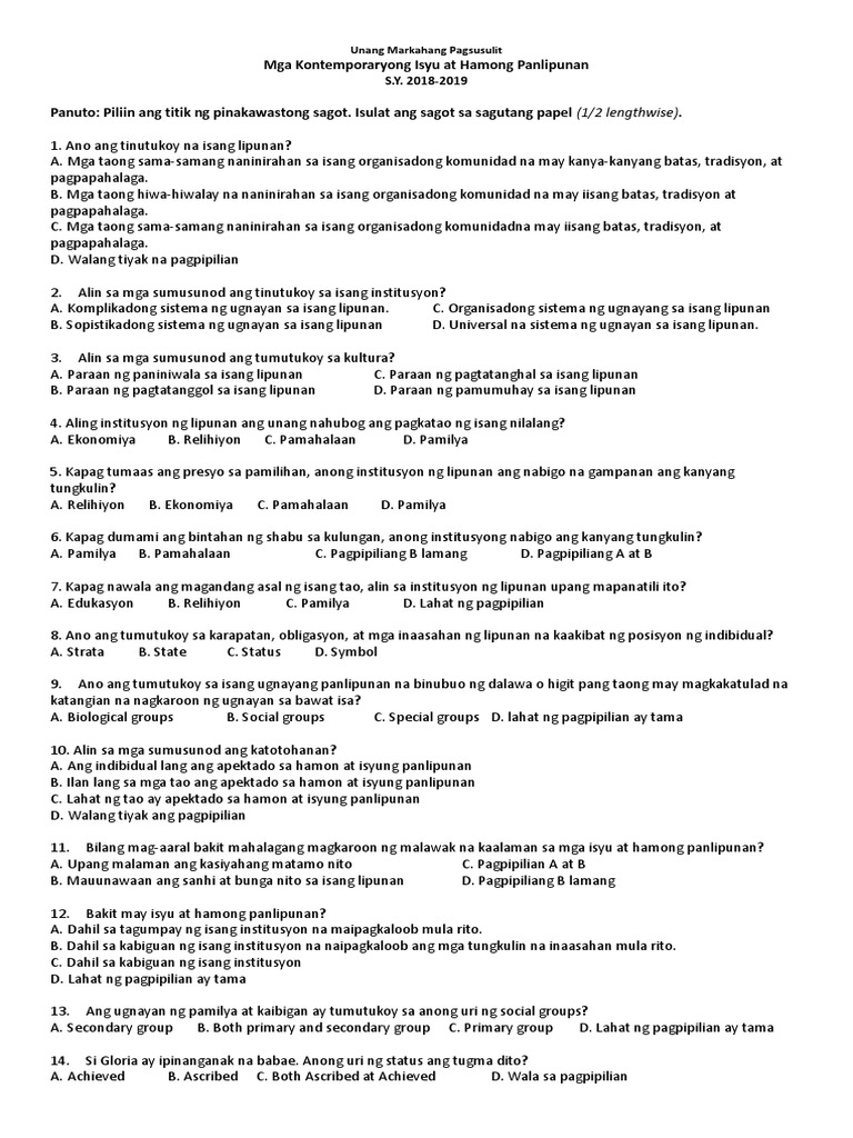 Unang markahang pagsusulit sa araling panlipunan 10 kontemporary isyu. Araling Panlipunan Ikasampung Baitang Alternative Delivery Mode Unang Markahan- Modyul 1. Mga Kontemporaryong Isyu Pangalan_. Buying a Removal Home.
